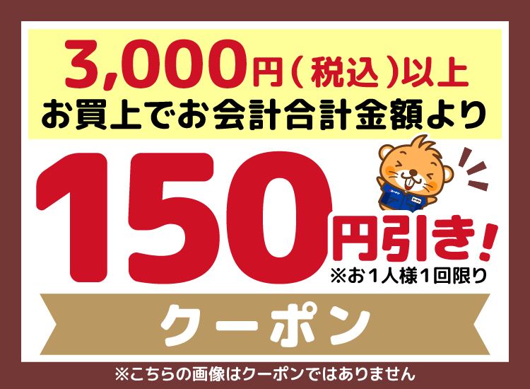 | 特典内容 | 1. 3,000円以上お買上で150円値引きクーポン ※ご利用はいずれも1回限りとなります。 |
