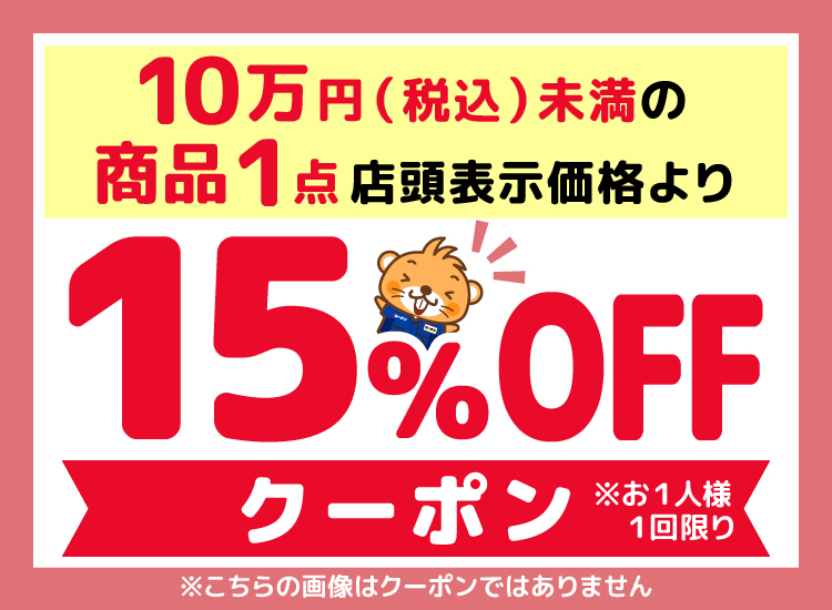 | 特典内容 | 10万円(税込)未満の商品1点15%OFFクーポン ※ご利用は1回限りとなります。 |