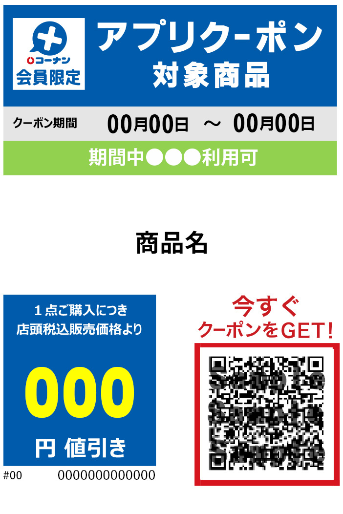 それぞれのクーポンでご利用条件が異なりますので、必ずご使用前にコーナンアプリのクーポン画面でご確認ください。