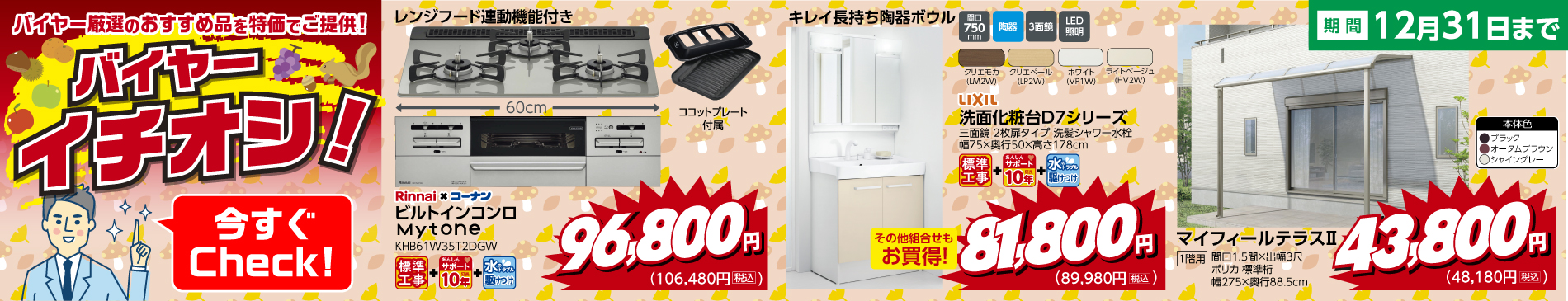 Rinnai ビルトインコンロ Rinnai×コーナンM…2025年12月31日まで 96,800円(税抜) 106,480円(税込)