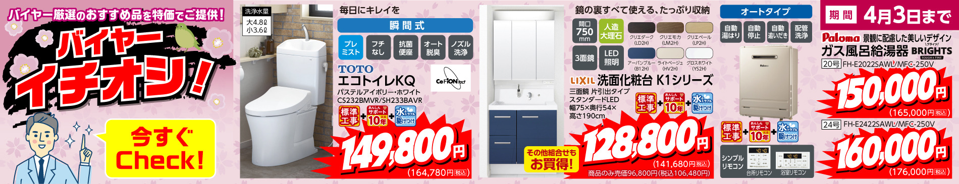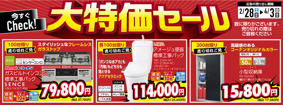 TOTO×コーナン ウォシュレット KMシリーズ 瞬間式…2026年5月6日まで 39,800円(税抜) 43,780円(税込) -