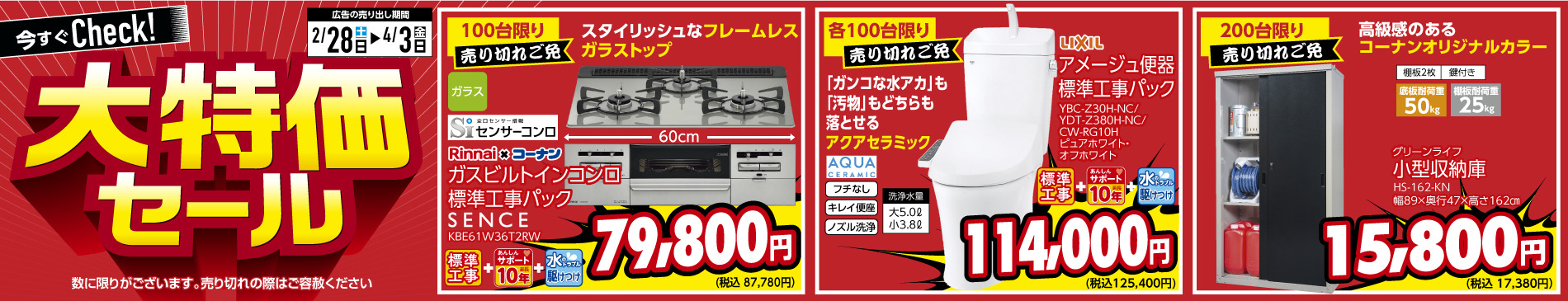 Rinnai ビルトインコンロ Rinnai×コーナンB…2026年4月3日まで 119,800円(税抜) 131,780円(税込) -