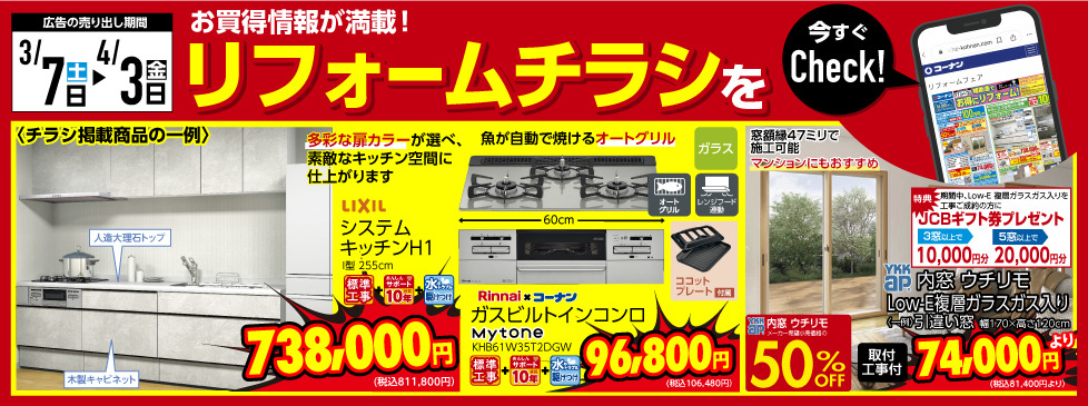 NORITZ×コーナン ビルトインコンロ Nest ビル…2026年4月3日まで 121,800円(税抜) 133,980円(税込)