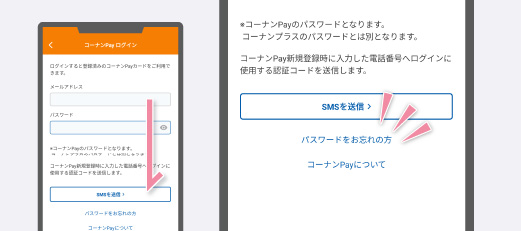 コーナンPayは多要素認証を採用しており、SMS(ショートメッセージサービス)にて認証コードを送付します。